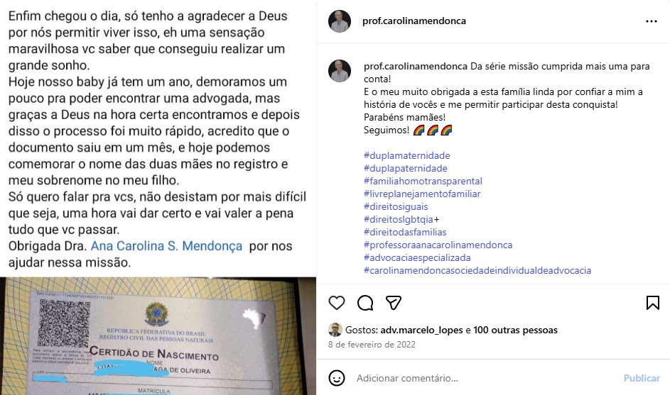 - Pioneirismo na Coparentalidade: Atuação no primeiro processo de coparentalidade por reprodução assistida reconhecido no país (três genitores no registro).