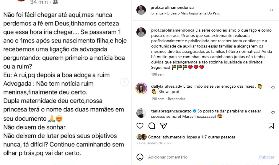 Cabe ressaltar que nossa causa foi abraçada pela advogada Ana Carolina, como se a causa fosse dela.